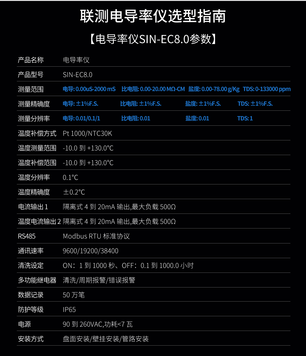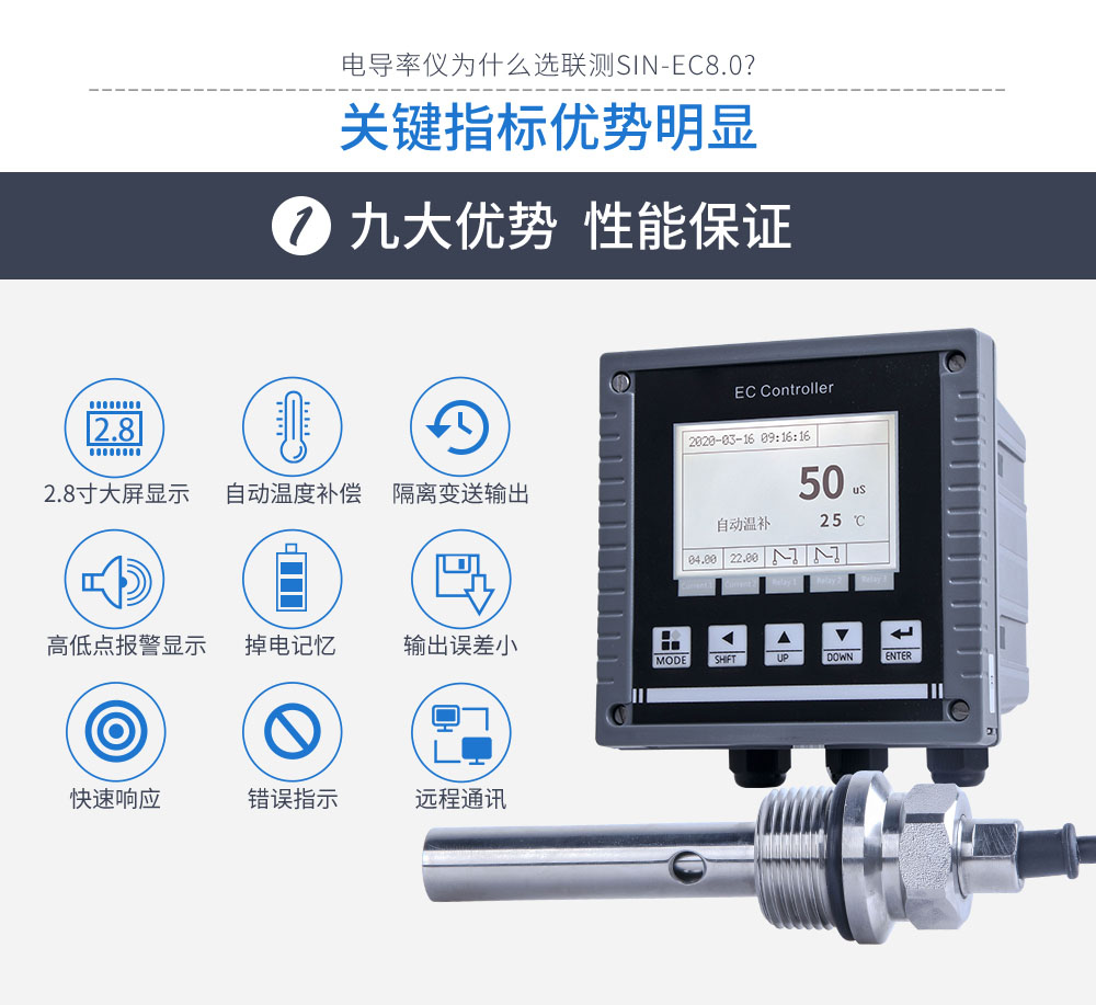 您的位置:首頁 > EC/電導(dǎo)率儀 → 聯(lián)測_SIN-EC8.0在線電導(dǎo)率儀_RO過程_水處理_CIP清洗_海水淡化