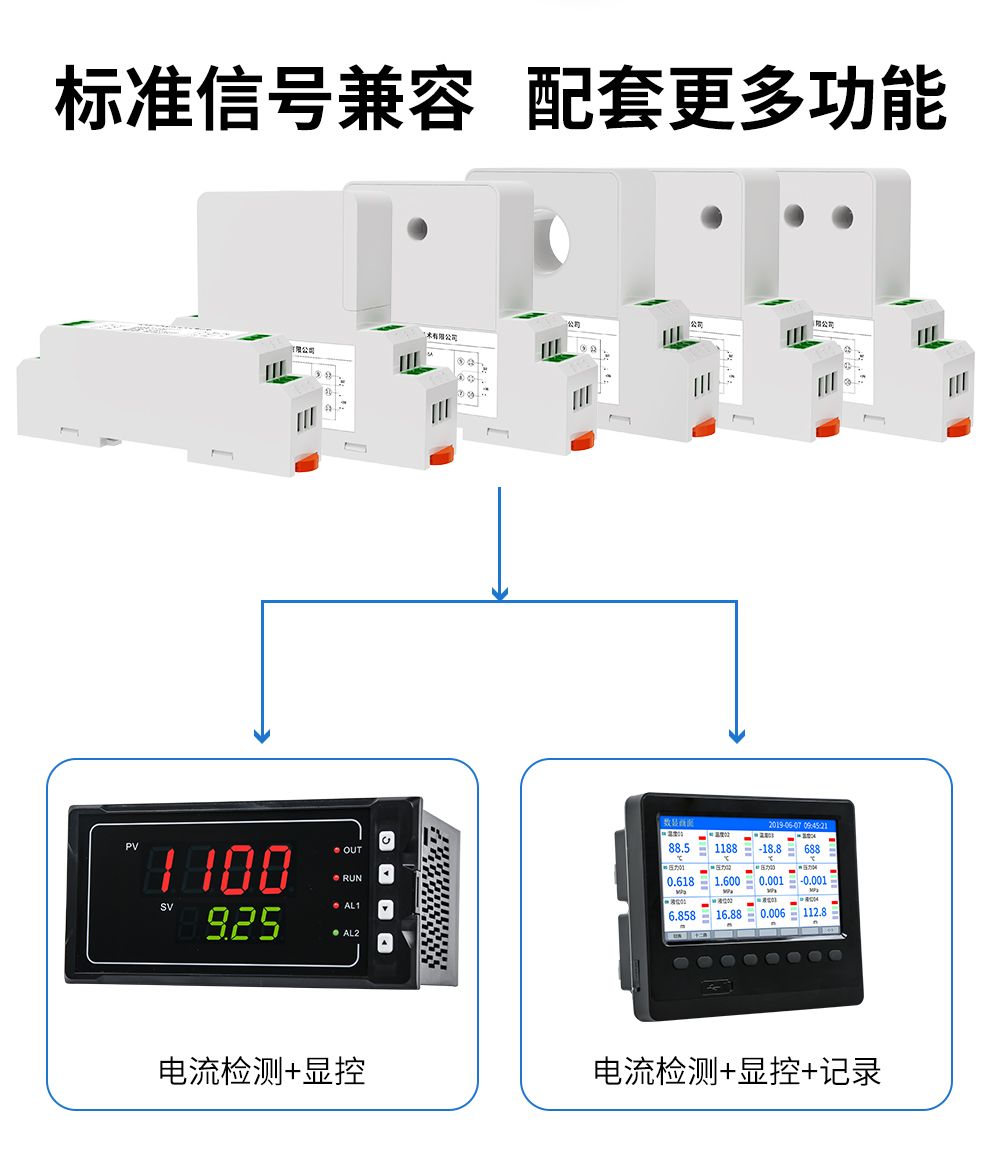 電流變送器可以直接將被測主回路交流電流或者直流電流轉(zhuǎn)換成按線性比例輸出的DC4~20mA(通過250Ω 電阻轉(zhuǎn)換DC 1~5V或通過500Ω電阻 轉(zhuǎn)換DC2~10V)恒流環(huán)標(biāo)準(zhǔn)信號(hào),連續(xù)輸送到接收裝置(計(jì)算機(jī)或顯示儀表)。