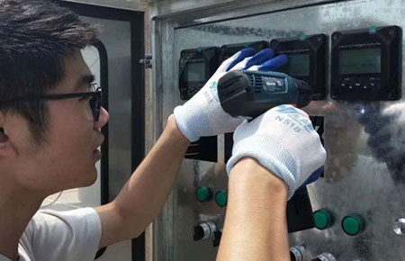 為進一步提升產品品質,讓客戶用上更優質的產品,近日,聯測技術服務工程師趕赴溫州藍田電鍍園,為其中230多臺應用于廢氣塔環境監測的pH控制器更換螺絲。