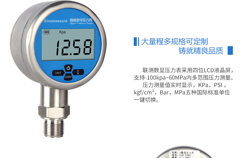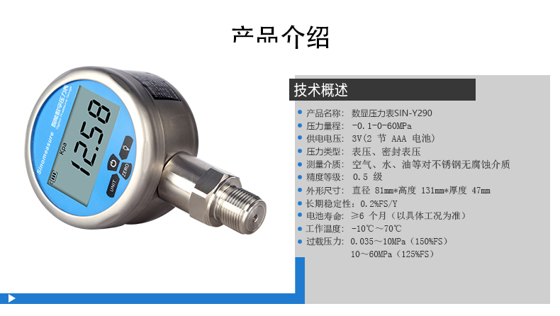 聯(lián)測數(shù)顯壓力表Y290,內(nèi)置高精度壓力傳感器,能夠 準(zhǔn)確的實時顯示壓力,并且具有精度高,長期穩(wěn)定性好 的特點。