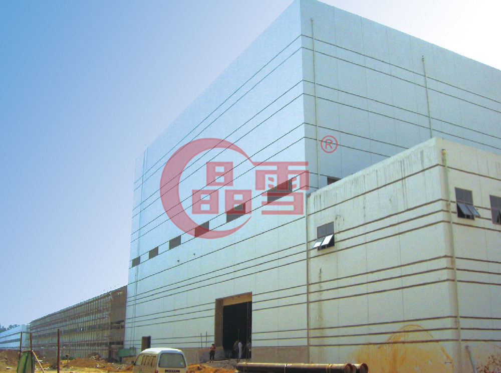 蒙牛乳業(yè)(馬鞍山)有限公司,位于安徽省馬鞍山市經(jīng)濟技術(shù)開發(fā)區(qū),是馬鞍山市雨山區(qū)知名公司,主要經(jīng)營冰淇淋、液體奶、現(xiàn)代牧場等項目。項目采用接插式板材,建筑高度達(dá)26m,庫體溫度為-30°℃,板材用量22599m2。