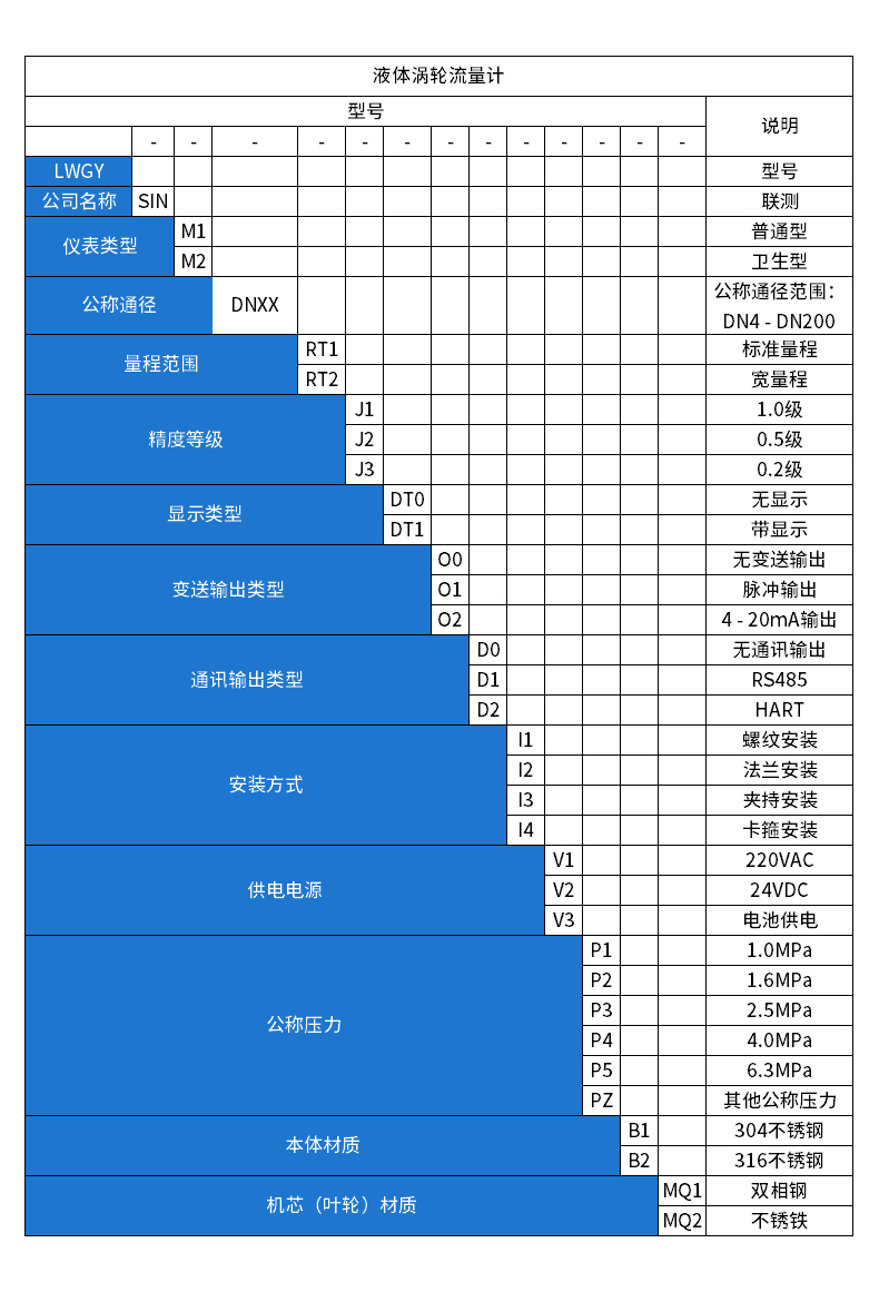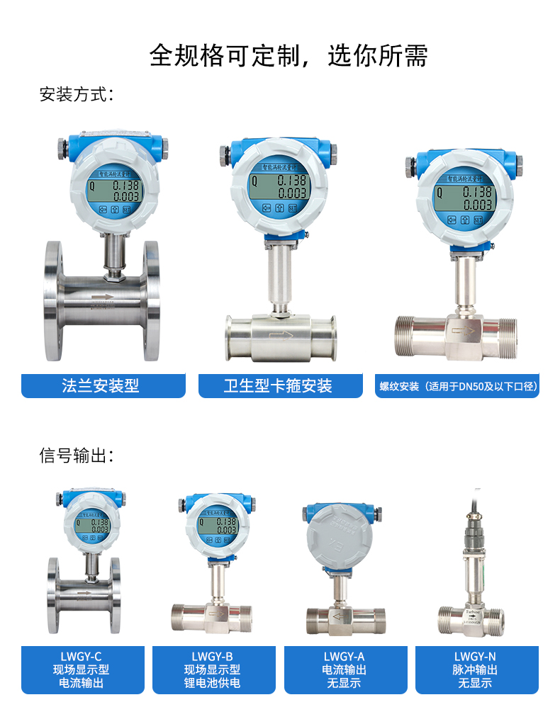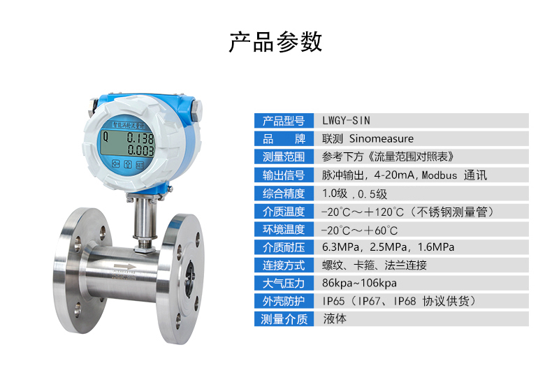 LWGY-SIN系列液體渦輪流量計(又稱渦輪傳感器以下簡稱傳感器)基于力矩平衡原理。傳感器適用于在工作溫度下粘度小于5×10-6m2/s的介質(zhì),對于粘度大于5×10-6m2/s的液體,要對傳感器進行實液標定后使用。