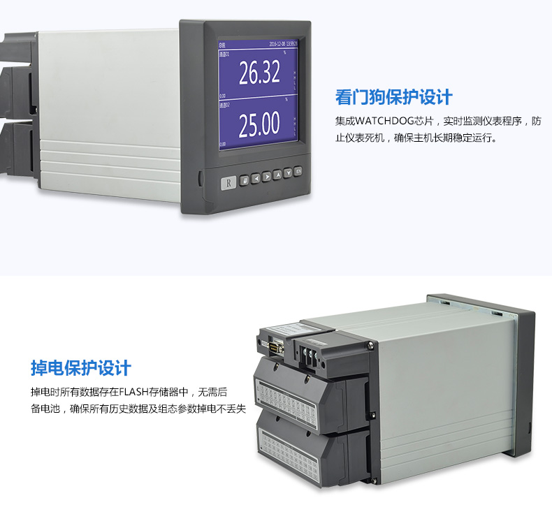 無(wú)紙記錄儀是將采集的數(shù)據(jù)/運(yùn)算數(shù)據(jù)以時(shí)間為基軸記錄在儀器內(nèi)部的存儲(chǔ)系統(tǒng)中,無(wú)消耗任何常用的記錄設(shè)施,如:紙張、筆墨。記錄在儀器內(nèi)部的存儲(chǔ)數(shù)據(jù),通過(guò)運(yùn)算、模擬后顯示在液晶屏。常用顯示用液晶屏比較廣泛。在液晶屏屏幕上,可以顯示數(shù)字顯示、棒圖顯示、曲線顯示、報(bào)警列表等。無(wú)紙記錄儀采集的數(shù)據(jù),常用的有:溫度、壓力、流量、液位、電壓、電流、濕度、頻率、振動(dòng)、轉(zhuǎn)速等。