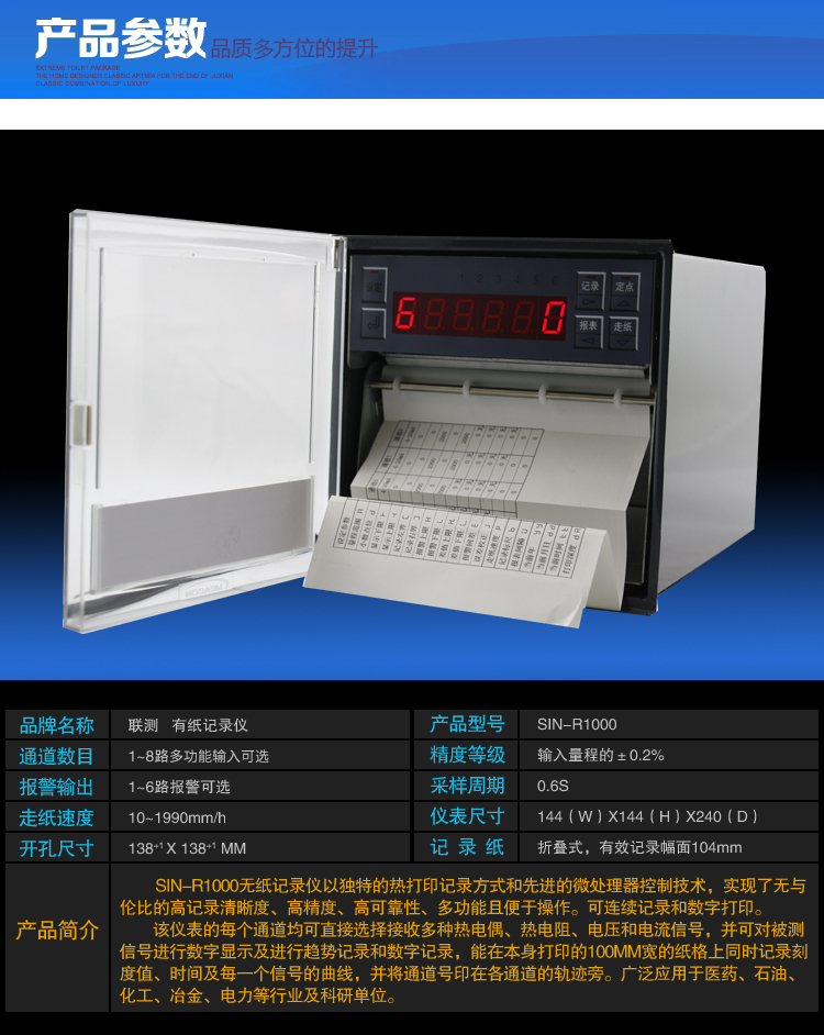 您的位置:首頁 > 有紙記錄儀 → 聯測_SIN-R1000_1-8點有紙/打印/曲線記錄儀電流電壓溫度/滅菌FO值